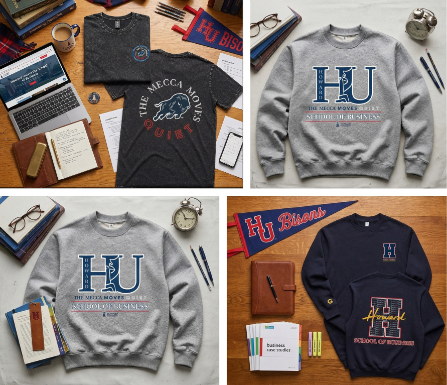 A collaborative luxury statement-wear collection that seamlessly integrates Howard University’s spirit of excellence with the craftsmanship and intention of Quiet Grind. A portion of the collection's proceeds will benefit the Graduate Student Council at the HU School of Business.